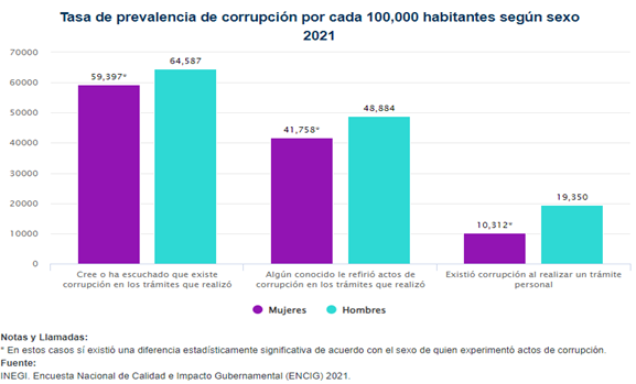 Fuente: Grafica 2. Tasa de Prevalencia de corrupción por cada 100,000 habitantes según sexo 2021 (inegi.org.2022).